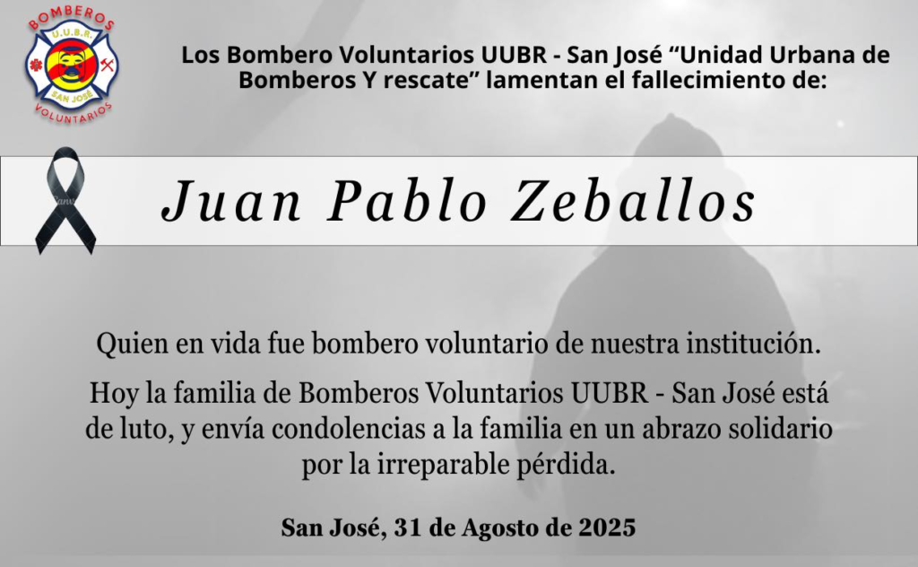 «Tu paso por nuestra unidad dejó huella, y siempre serás recordado como parte de nuestra familia UUBR. Descansa en paz, hermano», se lee en un post de los Bomberos Voluntarios UUBR.
