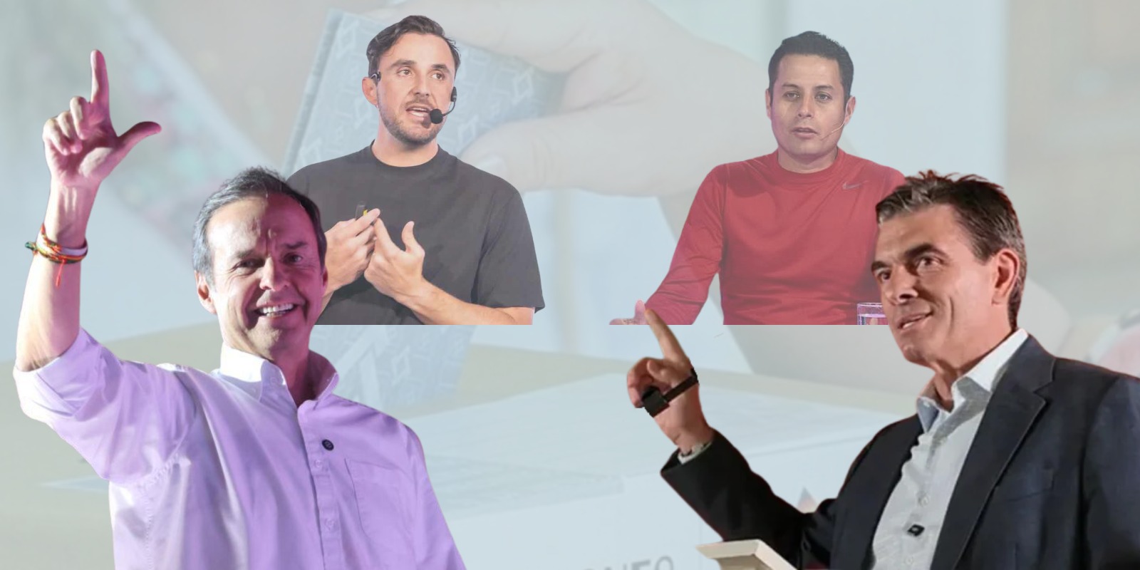 De Izquierda a derecha, Jorge Quiroga y Juan Pablo Velasco (Libre); Rodrigo Paz y Edman Lara (PDC), los cuatro tienen el desafío de debatir y de hacerlo contraponiendo ideas y no insultos. Composición: Sumando Voces