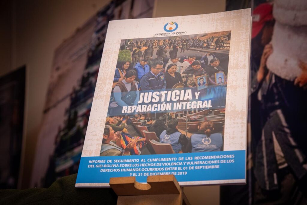 La Defensoría del Pueblo advirtió que el cumplimiento de las recomendaciones del GIEI es, en general, parcial, y alertó sobre retrocesos graves en materia de justicia y reparación integral para las víctimas de la crisis política y social de 2019. En su más reciente evaluación, “Informe de seguimiento al cumplimiento de las recomendaciones del GIEI-Bolivia”, la institución subrayó que las medidas implementadas por el Estado siguen siendo insuficientes, fragmentadas y sin una estrategia integral.