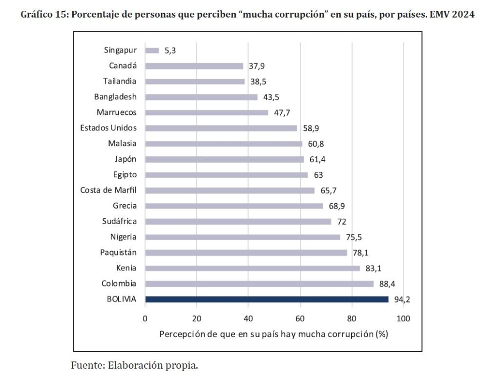 El 94% percibe mucha corrupción en Bolivia en 2024, el peor sitial internacional
