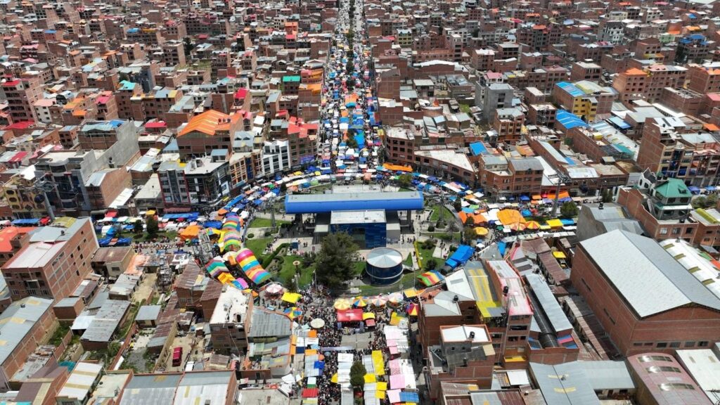 Vista panorámica de una feria de comercio en la ciudad de El Alto, Bolivia. Foto: Alcaldía El Alto