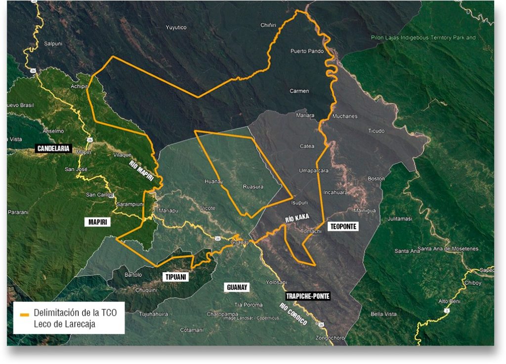 Fuente: Compendio de espaciomapas de TCO en tierras bajas (CEDLA, 2011) y Google Earth.