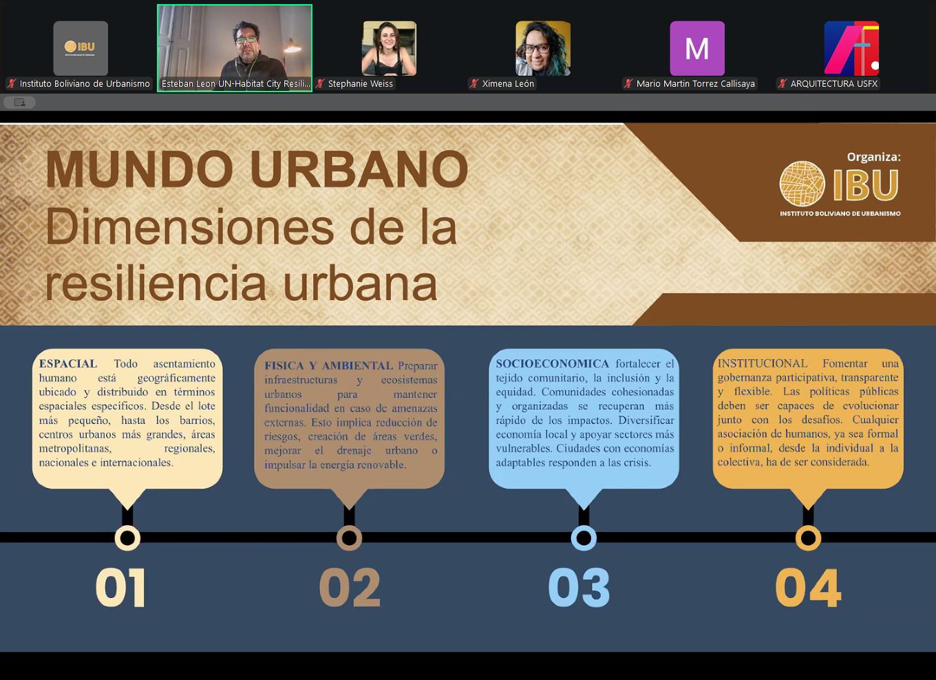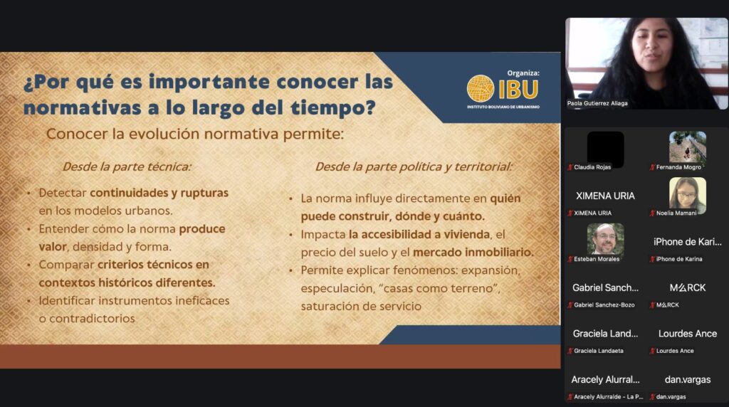 Captura de pantalla de la jornada virtual del III Congreso Boliviano de Urbanismo. Foto: IBU