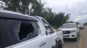Los vidrios rotos de una camioneta evidencian el ataque sufrido … Sigue leyendo Emboscan a la comitiva que daba inicio al operativo para desalojar a avasalladores