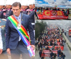 A la izq. Rodrigo Paz; a la der. imágenes de … Sigue leyendo En medio de la marcha de la COB, Rodrigo Paz ratifica que no retrocederá en las medidas económicas