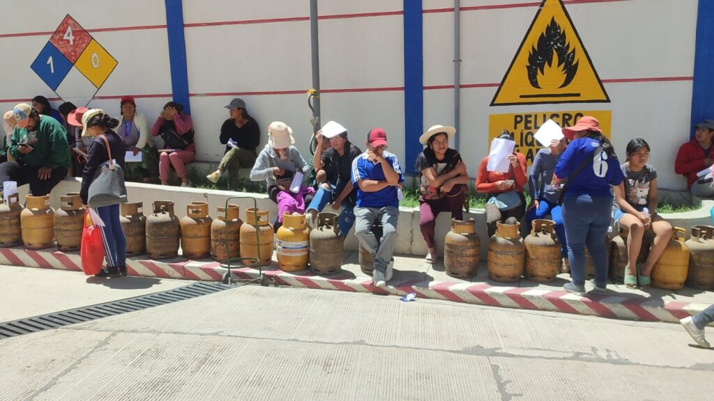 Filas por GLP. Foto: Infobo Bolivia Las filas para adquirir … Sigue leyendo Escasez de GLP se prolonga y agrava filas; el Gobierno advierte que contrabandistas de diésel ahora apuntan al gas doméstico