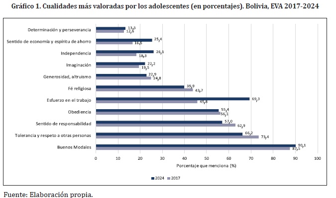 El investigador señala que “la sociedad boliviana valora más que los niños tengan buenos modales, que sean obedientes, que se porten bien y sean respetuosos hacia los mayores, a que sean libres, que sean independientes, que sean imaginativos, eso limita las capacidades fe desarrollo de las personas desde su infancia”.