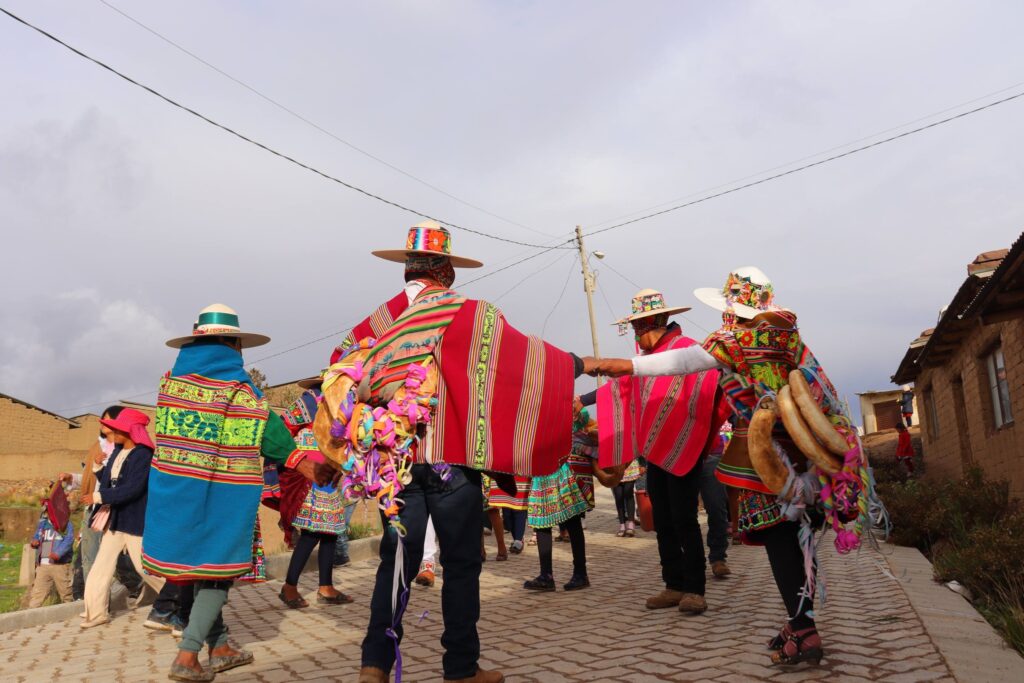 Choque también destacó la importancia de la vestimenta tradicional de las autoridades, que está normada en el reglamento interno y responde al principio de dualidad. El Tata Pushta, por ejemplo, viste poncho negro con franja amarilla, chicote, bastón de mando (muchramo), chuspa con coca, pantalón negro remangado, abarcas, sombrero y ch’ullu (gorro tradicional). En el caso de la Mama Pushta, la vestimenta incluye pollera y chaqueta negras, sombrero, abarcas, urqhu (faja o cinturón tradicional) en la cintura y aguayo.