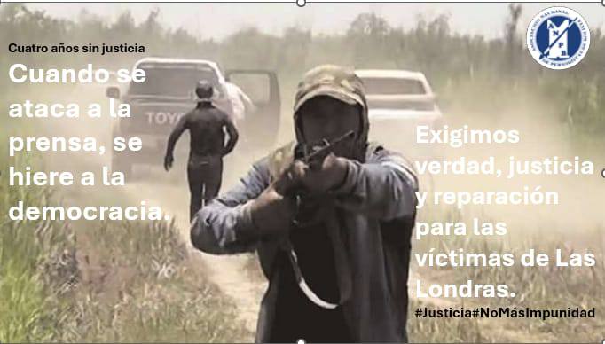 Un informe especial elaborado por organizaciones de periodistas y derechos humanos señala que el caso Las Londras cumple cuatro años sin ninguna condena y con los agresores impunes “enviando un mensaje peligroso de tolerancia hacia la violencia contra periodistas”. Tres de los imputados se encuentran en rebeldía y los otros dos enfrentan el juicio en libertad, mientras que el caso se encuentra paralizado.