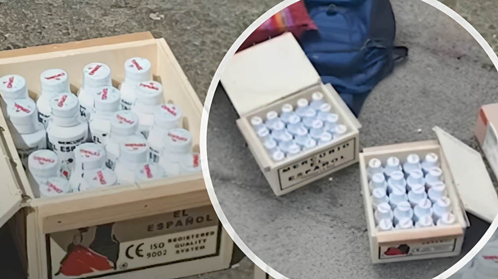 La Policía secuestró 348 envases con mercurio. Fotos: captura de video, ABI)
