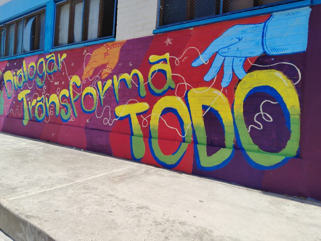 La jornada inició en la Unidad Educativa Ramón Germán Prada, donde se pintó un mural con el lema “Dialogar transforma todo”, como una huella de la visita de la Red al municipio, y como un recordatorio de que el diálogo honesto y horizontal, sigue siendo una llave que abre el espacio para entenderse, escuchar todas las voces con respeto, y cambiar el rumbo de una situación hacia la convivencia pacífica.