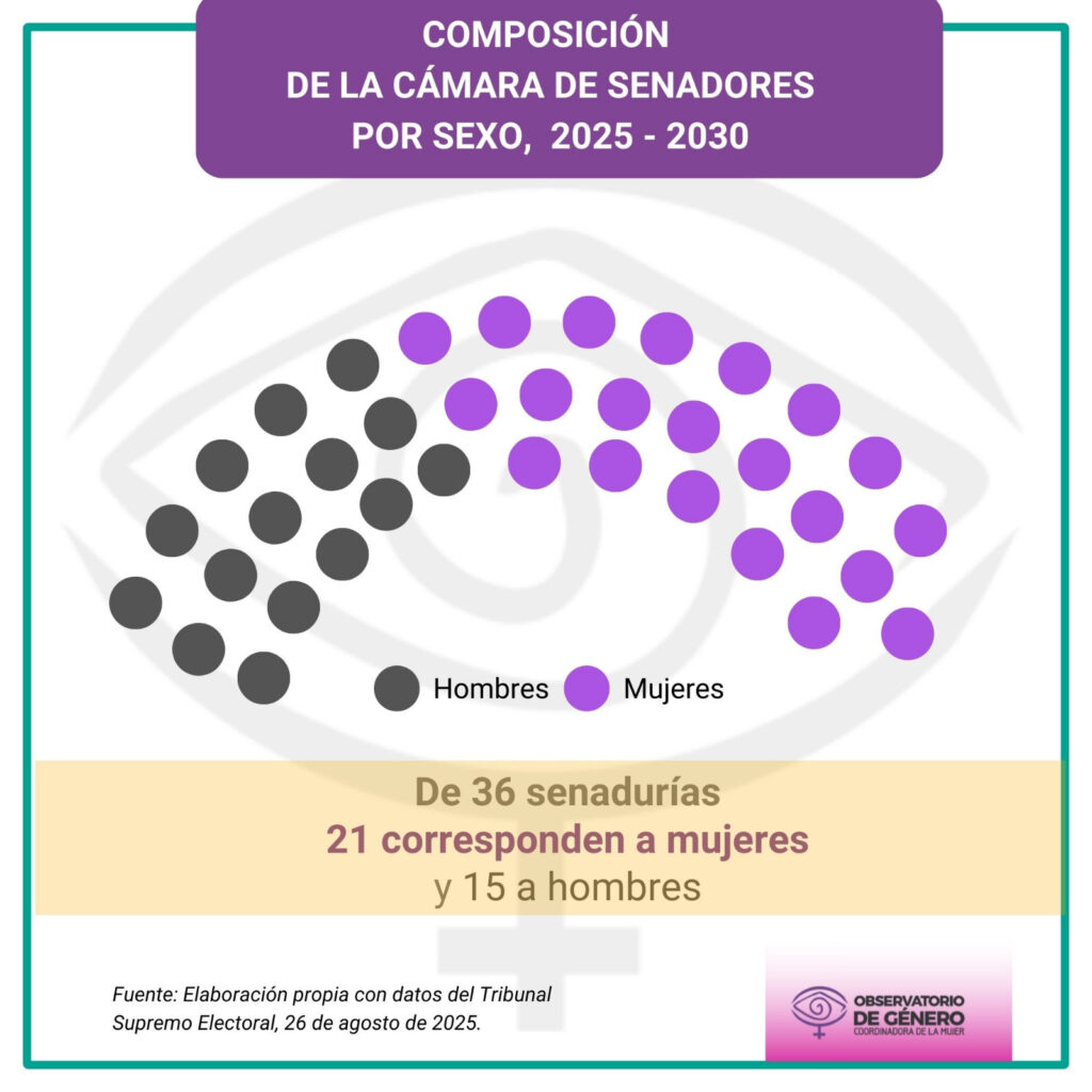 En la Cámara de Senadores, 21 de los 36 escaños (58,3%) serán ocupados por mujeres, mientras que en la Cámara de Diputados 66 de los 130 curules (50,7%) corresponderán a diputadas. En términos generales, las mujeres representarán el 52,4 % de los escaños legislativos, consolidando una mayoría inédita desde el retorno a la democracia.