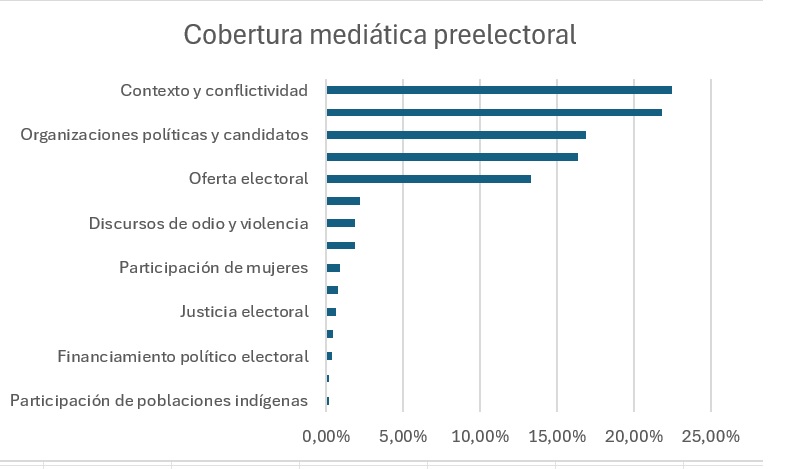 En cambio, temas como la participación de los indígenas, las mujeres y los jóvenes quedaron relegados a porcentajes ínfimos en la cobertura mediática.
