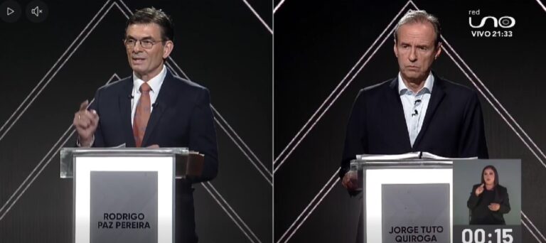 Rodrigo Paz y Jorge Tuto Quiroga en el debate presidencial. … Sigue leyendo Los candidatos ofrecen trabajar con los cooperativistas mineros y bonos de carbono para los indígenas