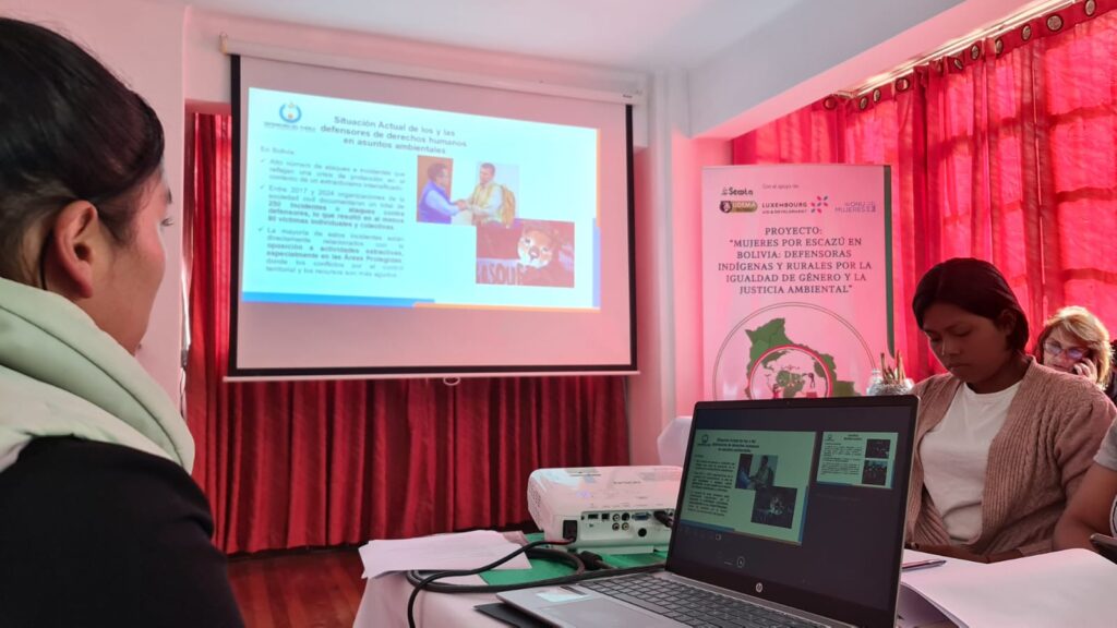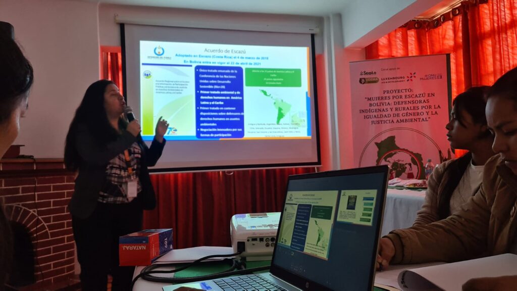 Más de 20 mujeres defensoras de derechos ambientales de La Paz, Potosí y Oruro participaron en un taller de capacitación orientado a fortalecer sus herramientas legales y mecanismos de protección, en el marco del proyecto “Mujeres por Escazú en Bolivia: defensoras indígenas y rurales por la igualdad de género y la justicia ambiental”.