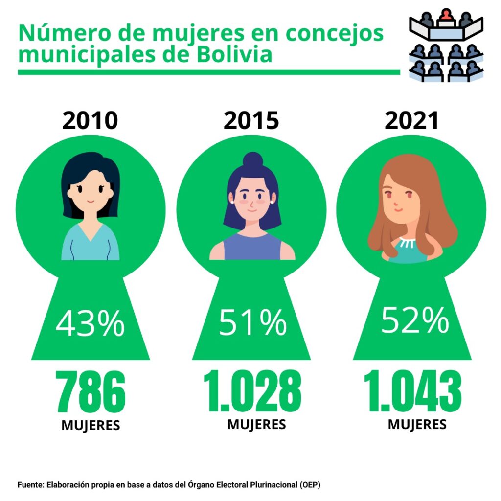 El salto cuantitativo de las mujeres en los espacios de poder ha sido significativo, aunque no es el ideal, sostiene la directora de la Fundación Construir, Susana Saavedra. Pero, este salto no ha sido producto de una voluntad política, sino una “imposición de cumplir una cuota”, aclara la analista política Susana Alvarado.