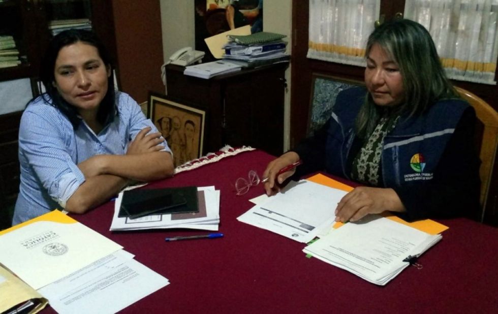 Marcela Guerrero en reunión con la Defensoría del Pueblo, para realizar seguimiento a denuncia de acoso y violencia política en el Concejo Municipal. Foto: Yobana Knaudt