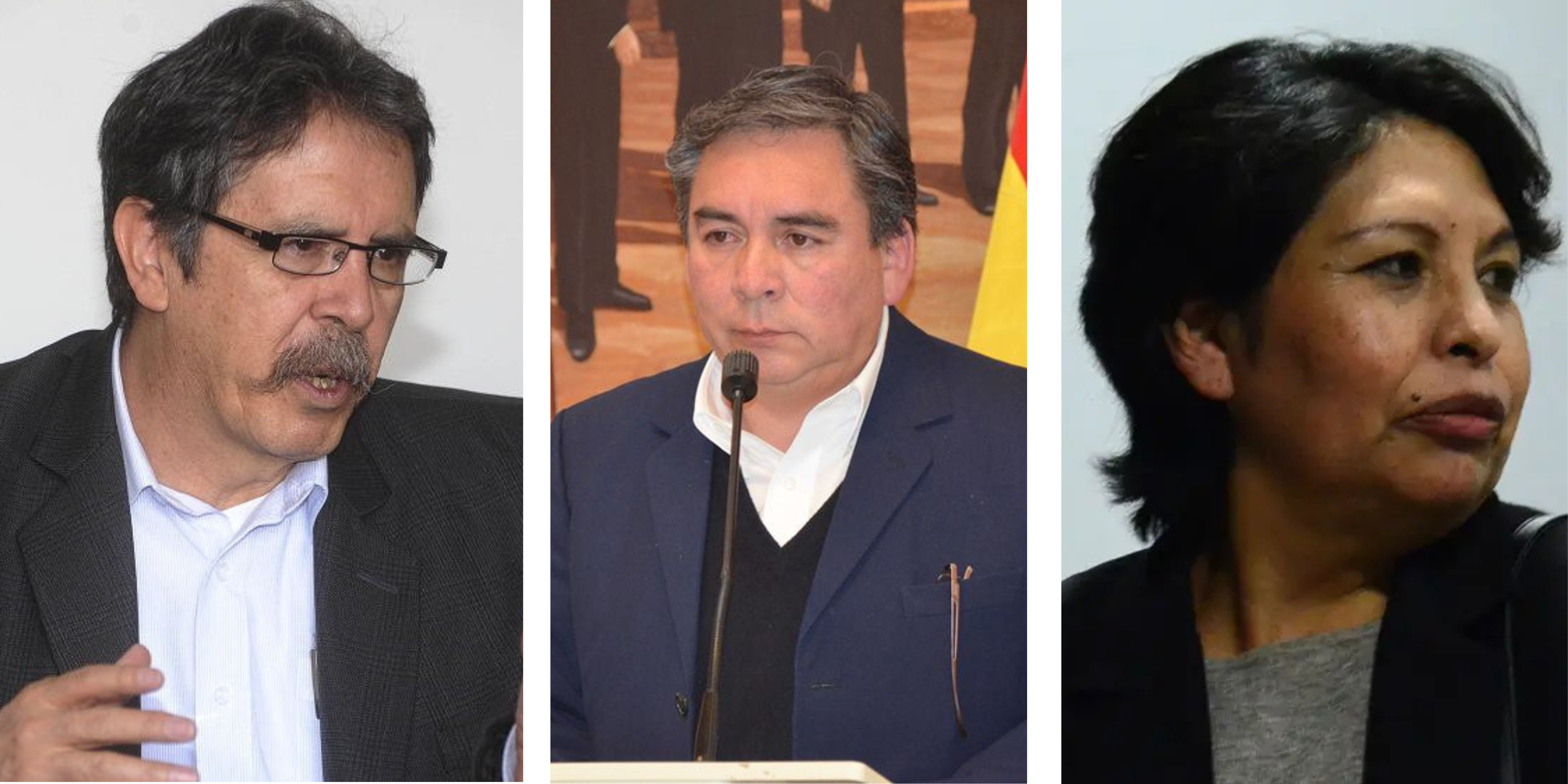 Los contralores en la era del MAS, de izq. a der: Gabriel Herbas, Henry Ara y Herminia Mamani.