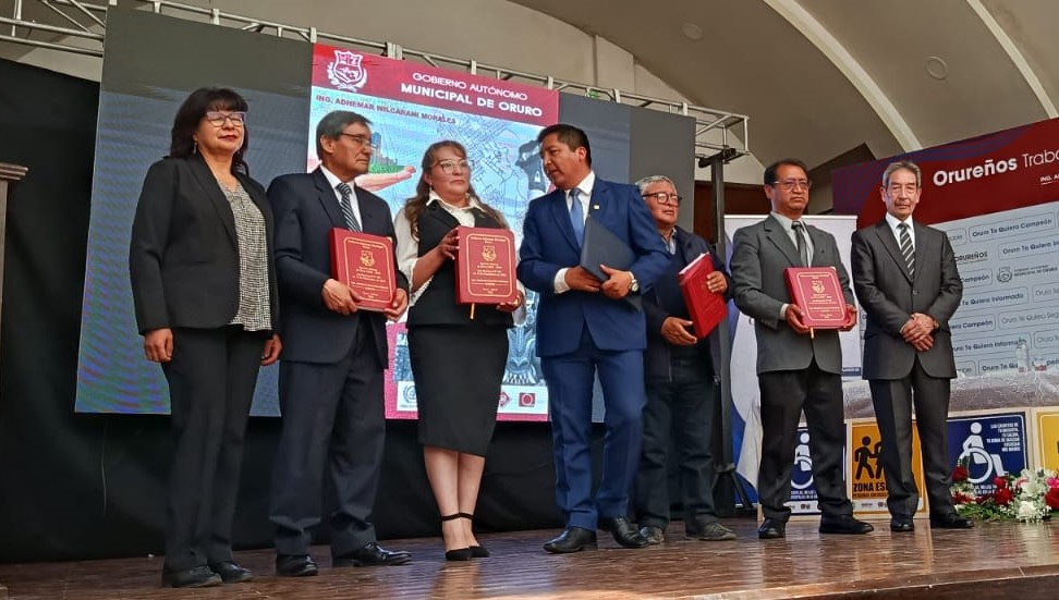 Durante el acto también hablaron el presidente de la Federación de Profesionales de Oruro  y el rector de la UTO, quienes se comprometieron a trabajar para la implementación de la agenda urbana.