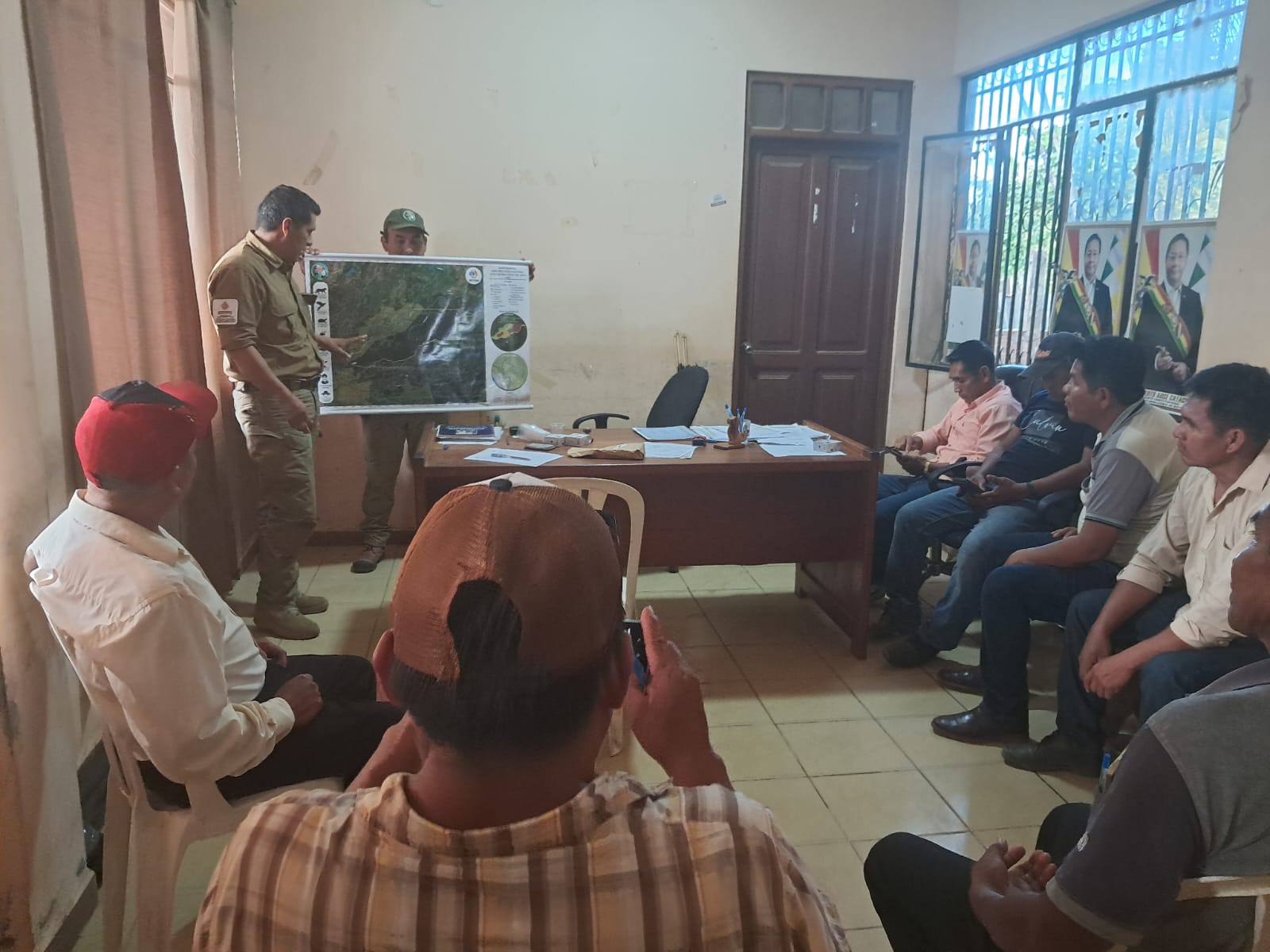 «En la búsqueda de soluciones pacíficas y concertadas respecto al asentamiento ilegal Bettel, la Dirección y Cuerpo de Protección sostuvieron una reunión de acercamiento y coordinación con la nueva dirigencia del Gran Concejo, a quienes de manera previa se explicó la importancia de resguardar las áreas protegidas, su marco normativo, pero además el respeto de los derechos, usos y costumbres de las comunidades asentadas legalmente dentro del área protegida», señala un post de Marcos Uzquiano, guardaparque y Jefe de Protección de la Reserva de la Biósfera y Estación Biológica del Beni.