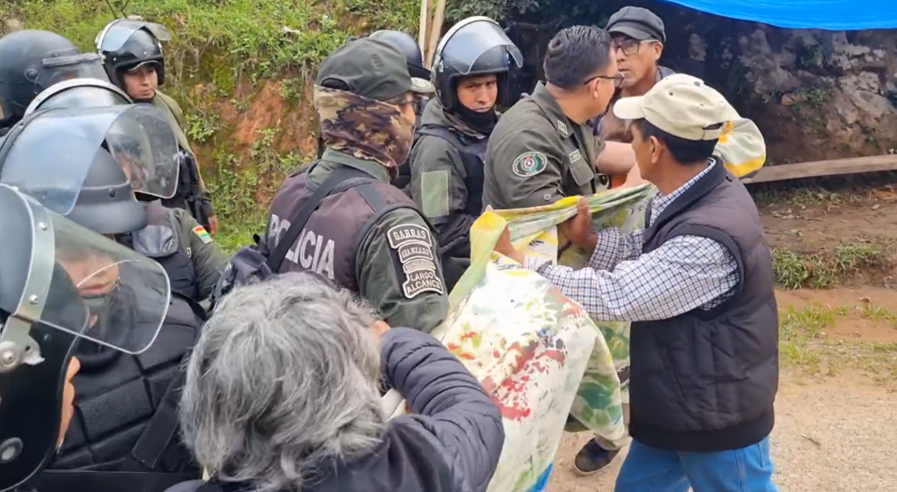 A la izq. policías retienen a un comunario de Tariquía; … Leer más