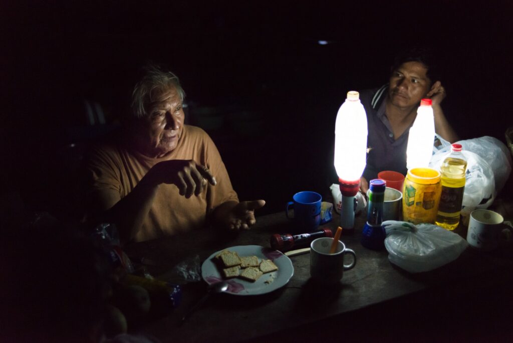 Domingo Ocampo conversa a la luz de unas linternas.