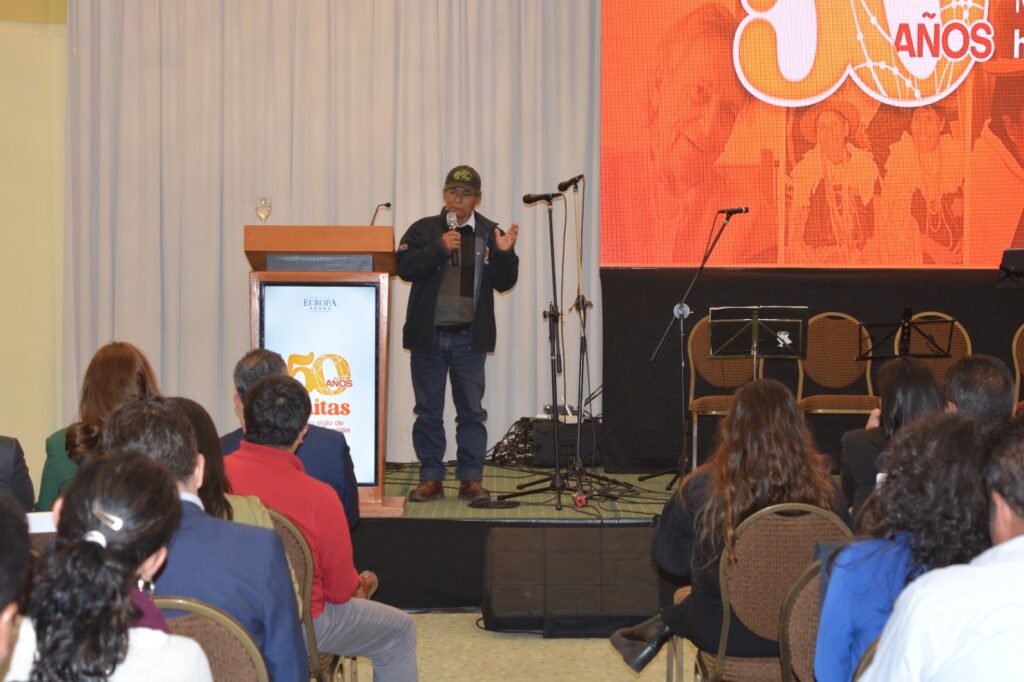 A su turno, Félix Torrez, presidente del Directorio de la Red UNITAS, recordó que desde Radio PIO XII llevan 40 años de acompañamiento a la Red, “desde las bases”, con el impulso de un grupo de personas que apostaron por la democracia y los derechos humanos. Citó al padre Gregorio Iriarte y al padre Xavier Albó, quien en su libro autobiográfico recuerda que UNITAS nació en una pequeña oficina de Iriarte.