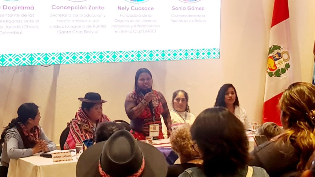 Zulya expone en uno de los conversatorios de la III Cumbre Internacional de Mujeres Indígenas.